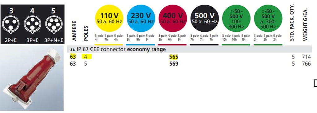 MENNEKES CEE CONNECTOR 565; Julat EKONOMI, 63A-4P-415V, IP67