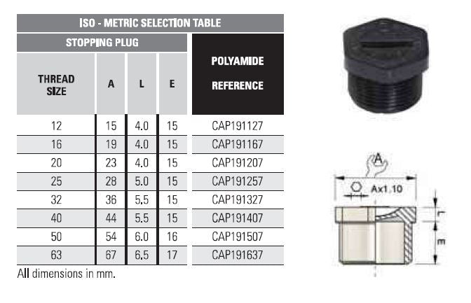 EATON / CAPRI EXD & EXE 堵头,191637 / 191507 / 191407 / 191327 / 191257 / 191207,聚酰胺