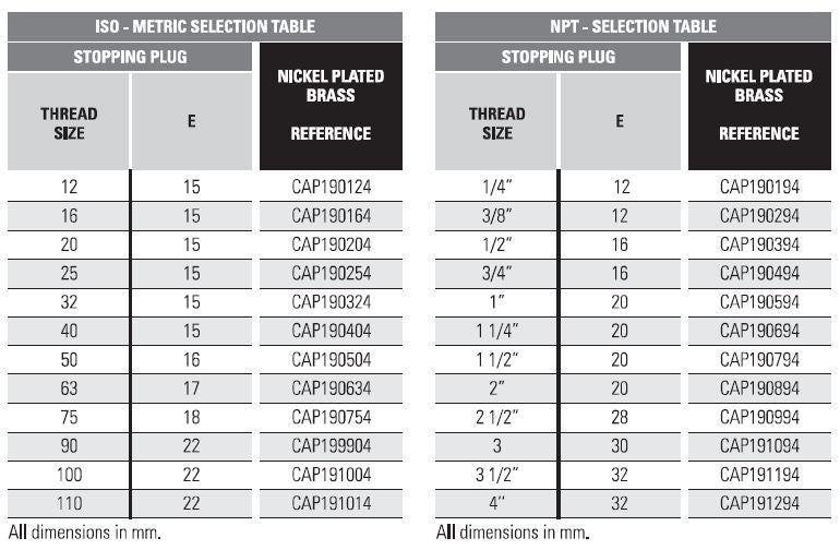EXE 堵头,2" 至 1/2",M63/ M50/ M40/ M32/ M25/ M20