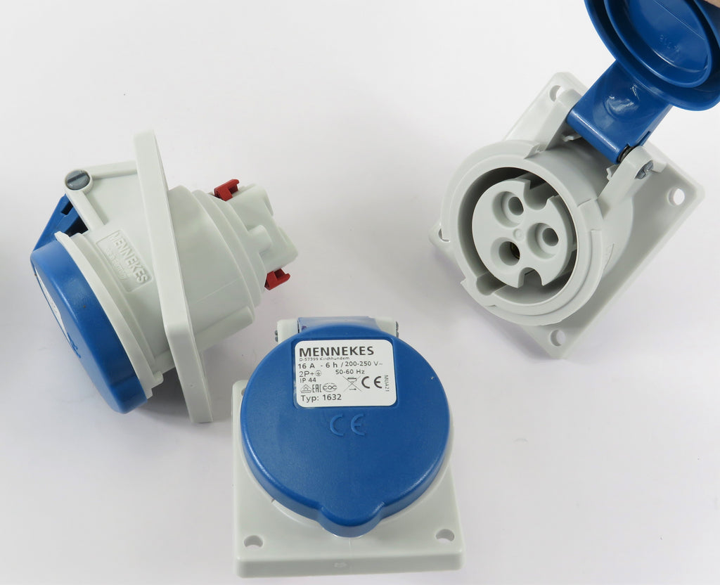 带 TwinContact 的 Mennekes 插座 1632;面板安装,16A-3P-230V,IP44