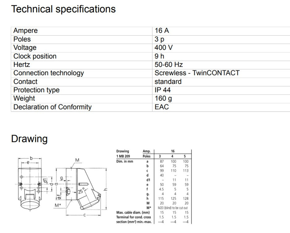 Mennekes 插座 1721,壁挂式,无螺钉,16A-3P-415V,IP44