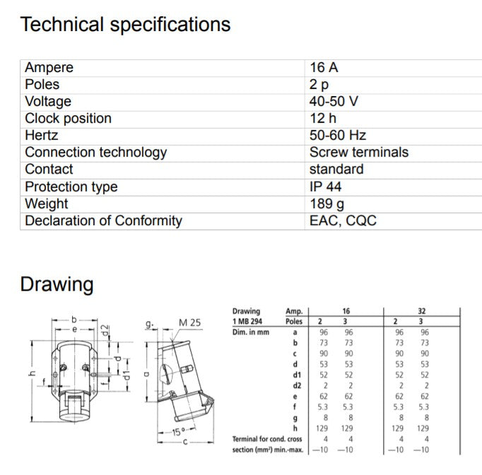 Mennekes 插座 1831,壁挂式,螺钉端子,16A-2P,40-50V,IP44
