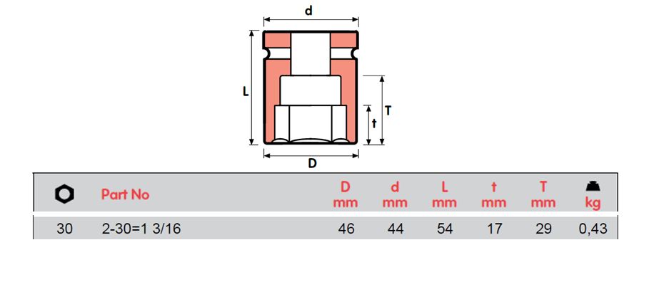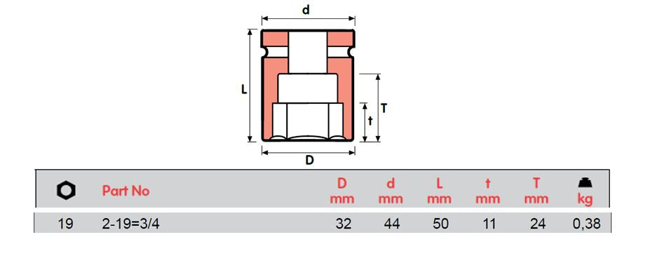 MOMENTO 冲击套筒,内螺纹方形 3/4",2-17 至 2-30=1 3/16,ISO 9001 和 ISO 14001 认证