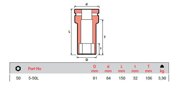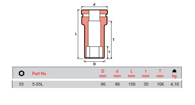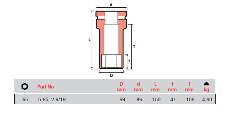 MOMENTO 冲击套筒,5-50L、5-55L、5-65=2 9/16L,内螺纹方形 1 1/2",ISO 9001 和 ISO 14001 认证
