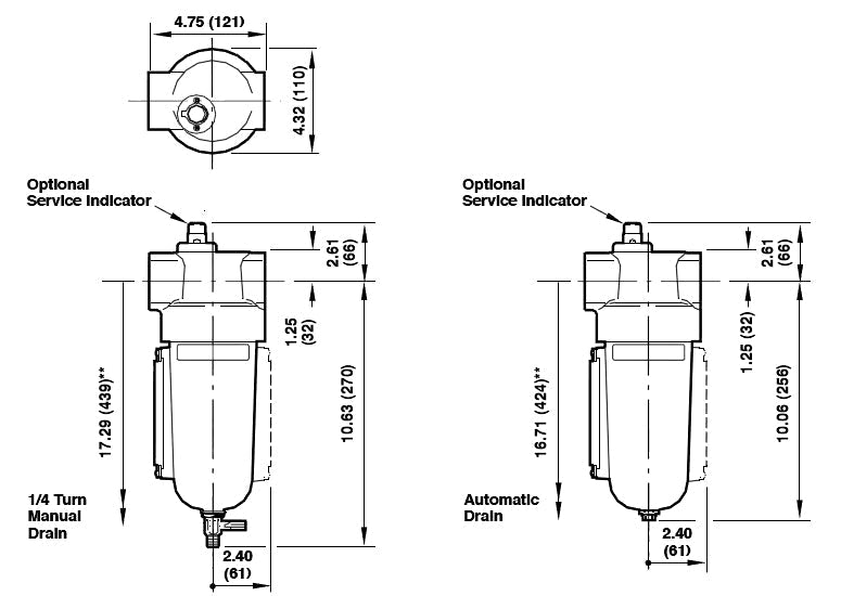 自动排水连接: 1/8-27 和 1/8-28 外管螺纹。